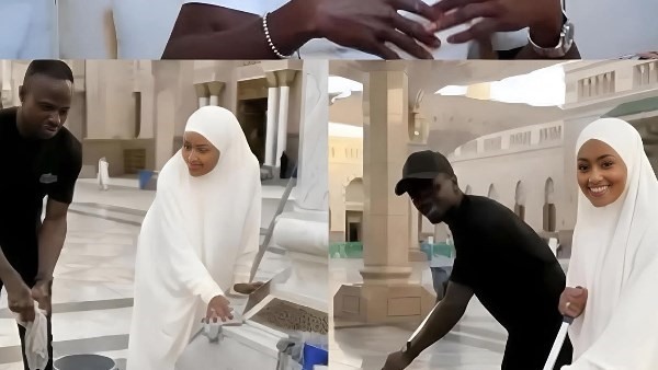السنغالي ساديو ماني، لاعب نادي النصر، برفقة زوجته عائشة تامبا، أثناء مشاركتهما