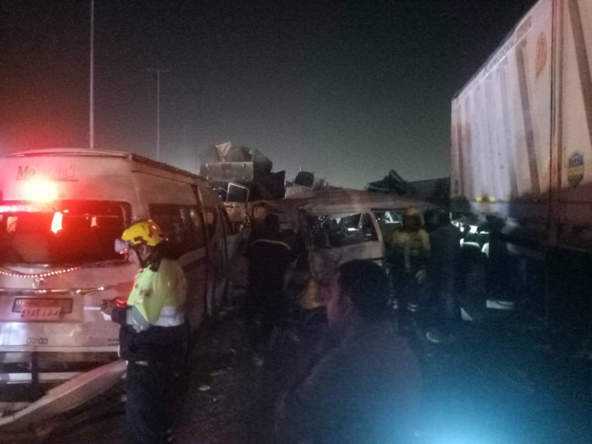 تكثف قوات الإنقاذ البري جهودها لاستخراج الضحايا العالقين داخل السيارات المحطمة، حيث لجأت الفرق إلى تقطيع أجزاء من هياكل السيارات الحديدية لتمكين فرق الإسعاف من الوصول إلى المصابين وإنقاذهم.