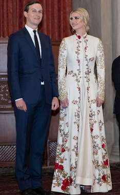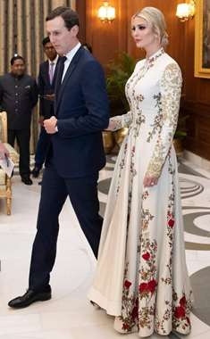 كما ظهرت إيفانكا ترامب يثوب أبيض خلال حفل العشاء الرسمي في المقر الرسمي لرئيس الهند .