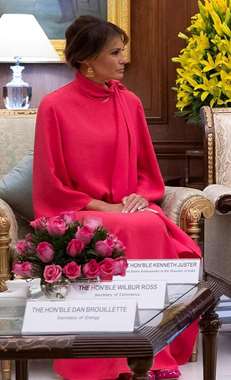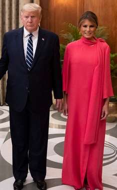 بالتزامن مع زيارة الرئيس الأمريكي دونالد ترامب للهند ظهرت زوجته ميلانيا بإطلالة هندية حيث ارتدت ثوبًا هنديًا قيمته 3 آلاف دولار من تصميم أحد مصممي الأزياء الهنود.