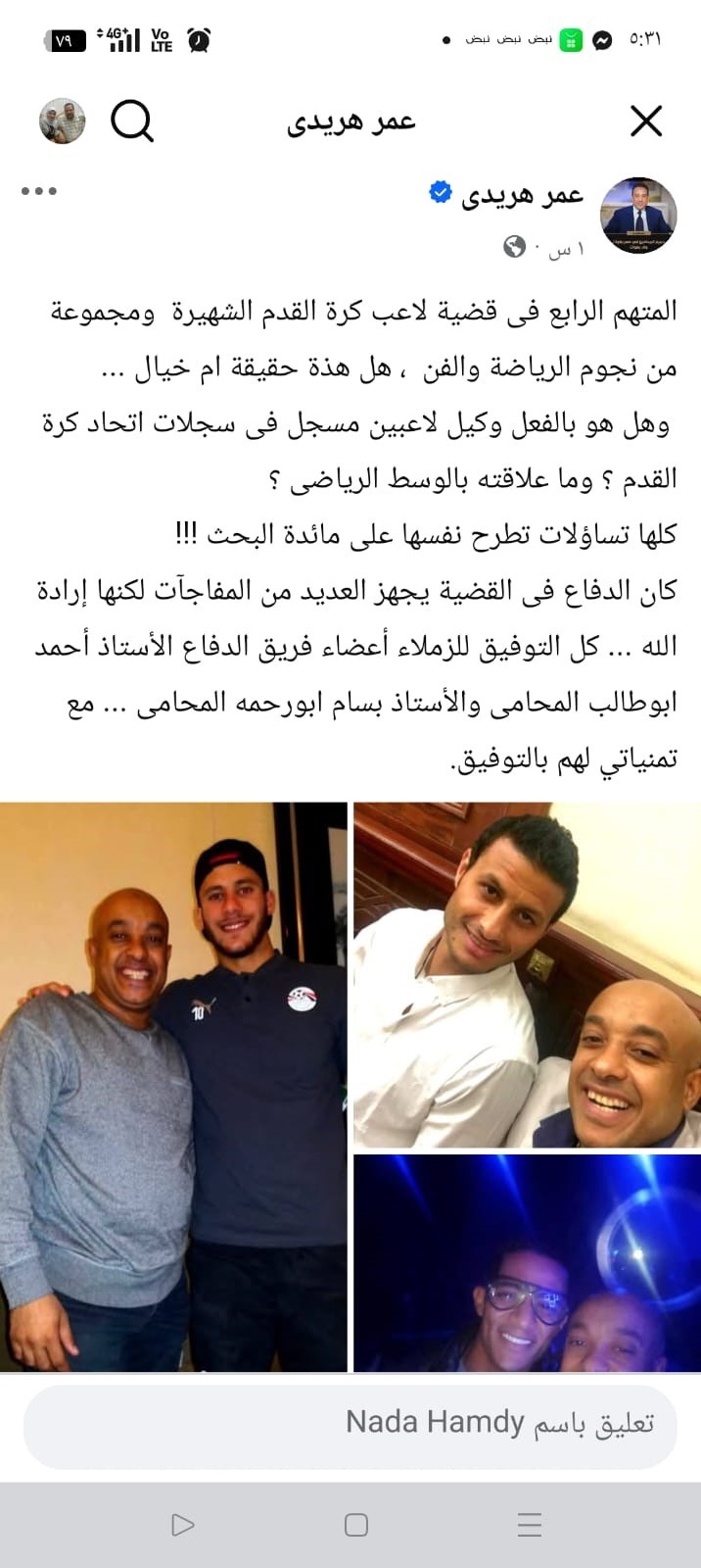منشوره:"المتهم الرابع فى قضية لاعب كرة القدم الشهيرة ومجموعة من نجوم الرياضة والفن، هل هذه حقيقة